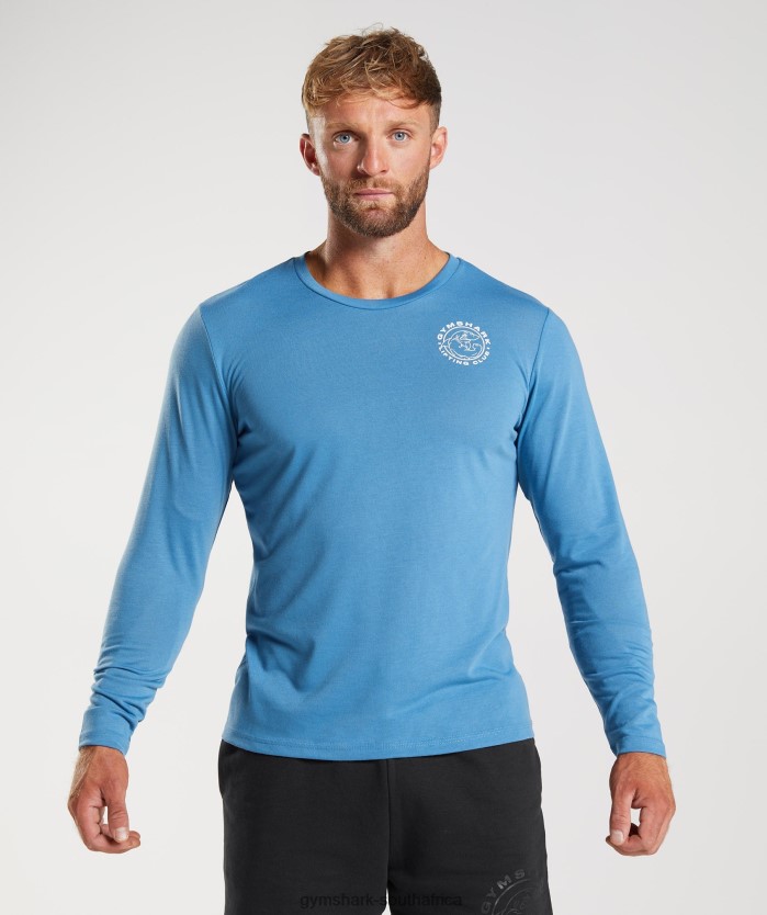 Gymshark Clothing South Africa – Gymshark Legacy Long Sleeve T-Shirt Coastal Blue Men 6464T4675